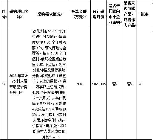 常州市農(nóng)業(yè)農(nóng)村局2023年1月(第1批)政府采購(gòu)意向
