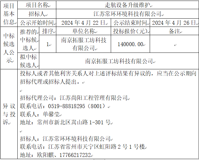 走航設(shè)備升級維護(hù)中標(biāo)候選人公示