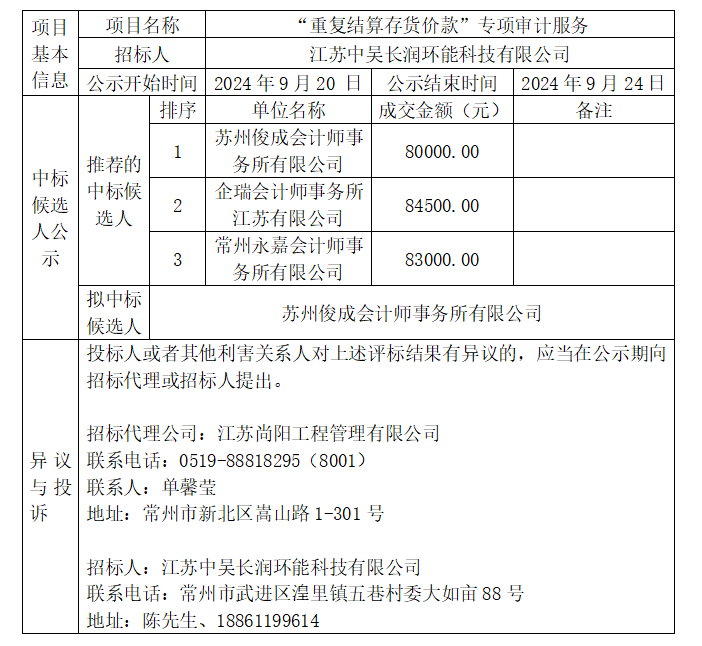 “重復(fù)結(jié)算存貨價(jià)款”專項(xiàng)審計(jì)服務(wù)成交候選人公示