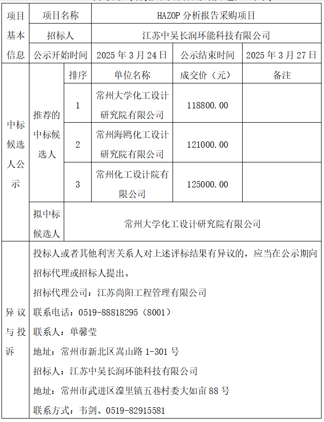 HAZOP分析報(bào)告采購項(xiàng)目成交候選人公示