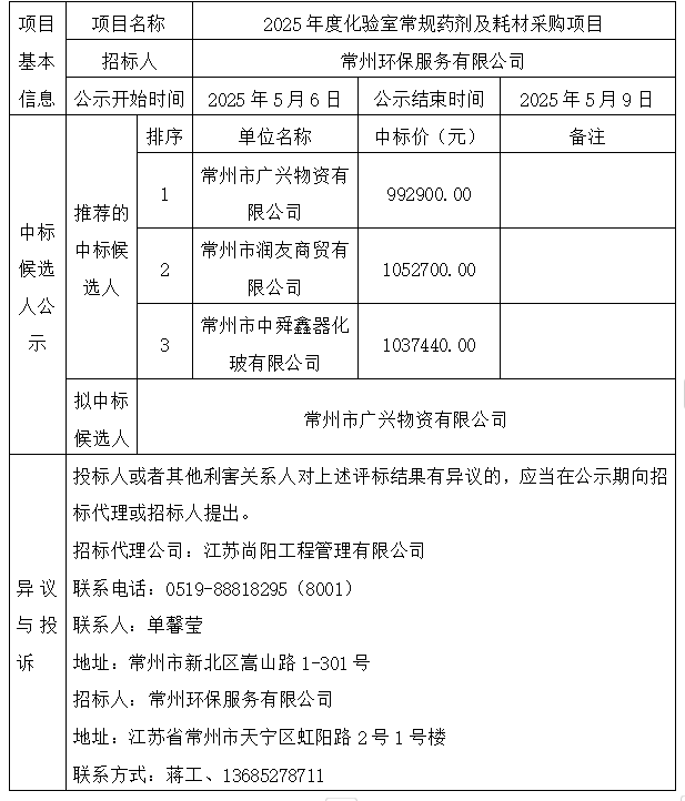 2025年度化驗室常規(guī)藥劑及耗材采購項目 中標候選人公示