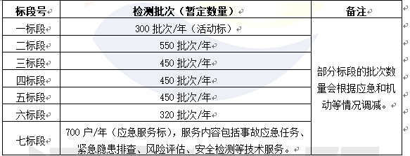 上述所列檢測批次為暫定數(shù)量,僅作參考,供應(yīng)商必須充分考慮價格變動和實際檢測批次的風(fēng)險,合同采用固定單價形式簽訂,最終按實際檢測批次及戶數(shù)進行結(jié)算。